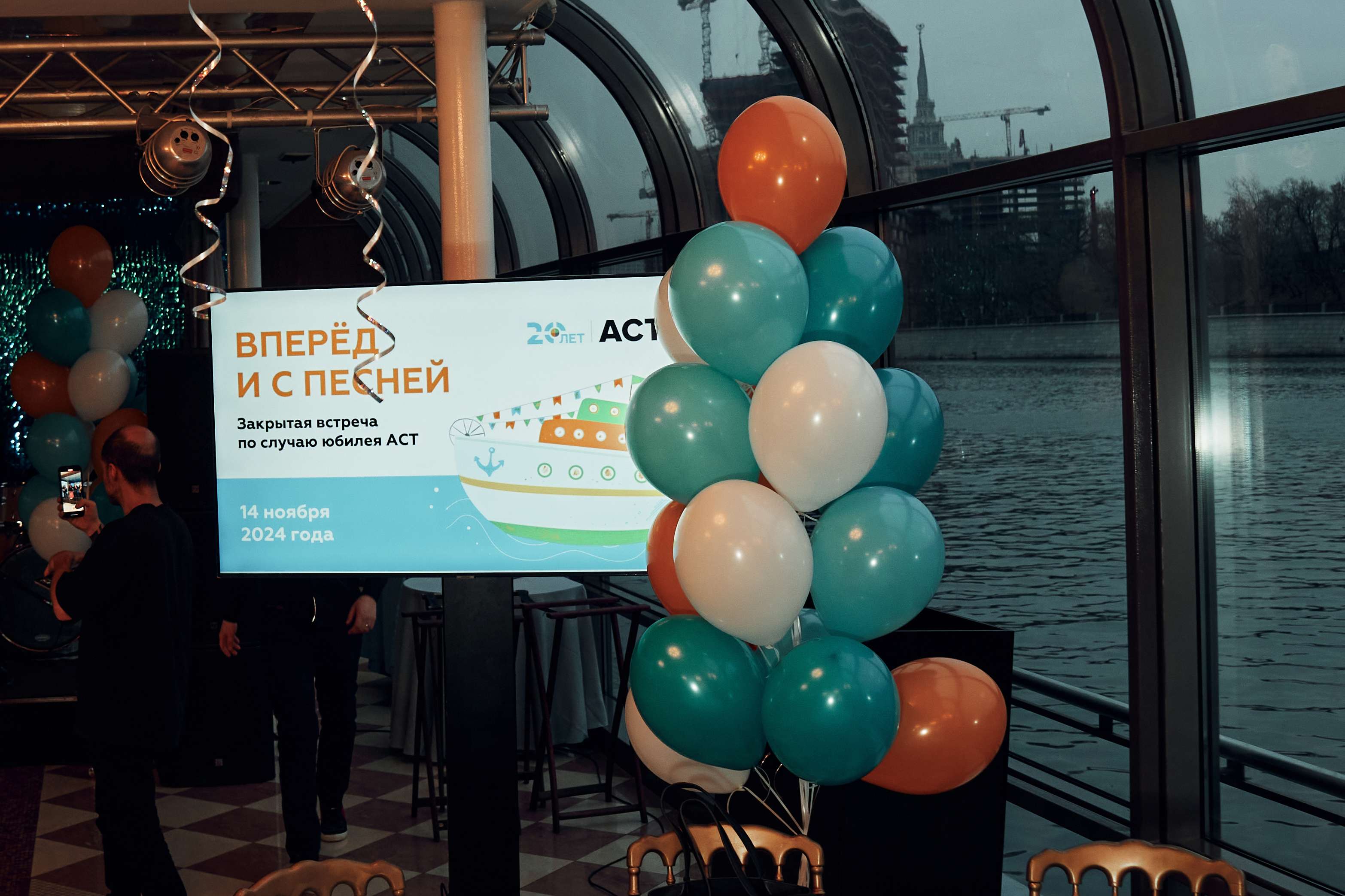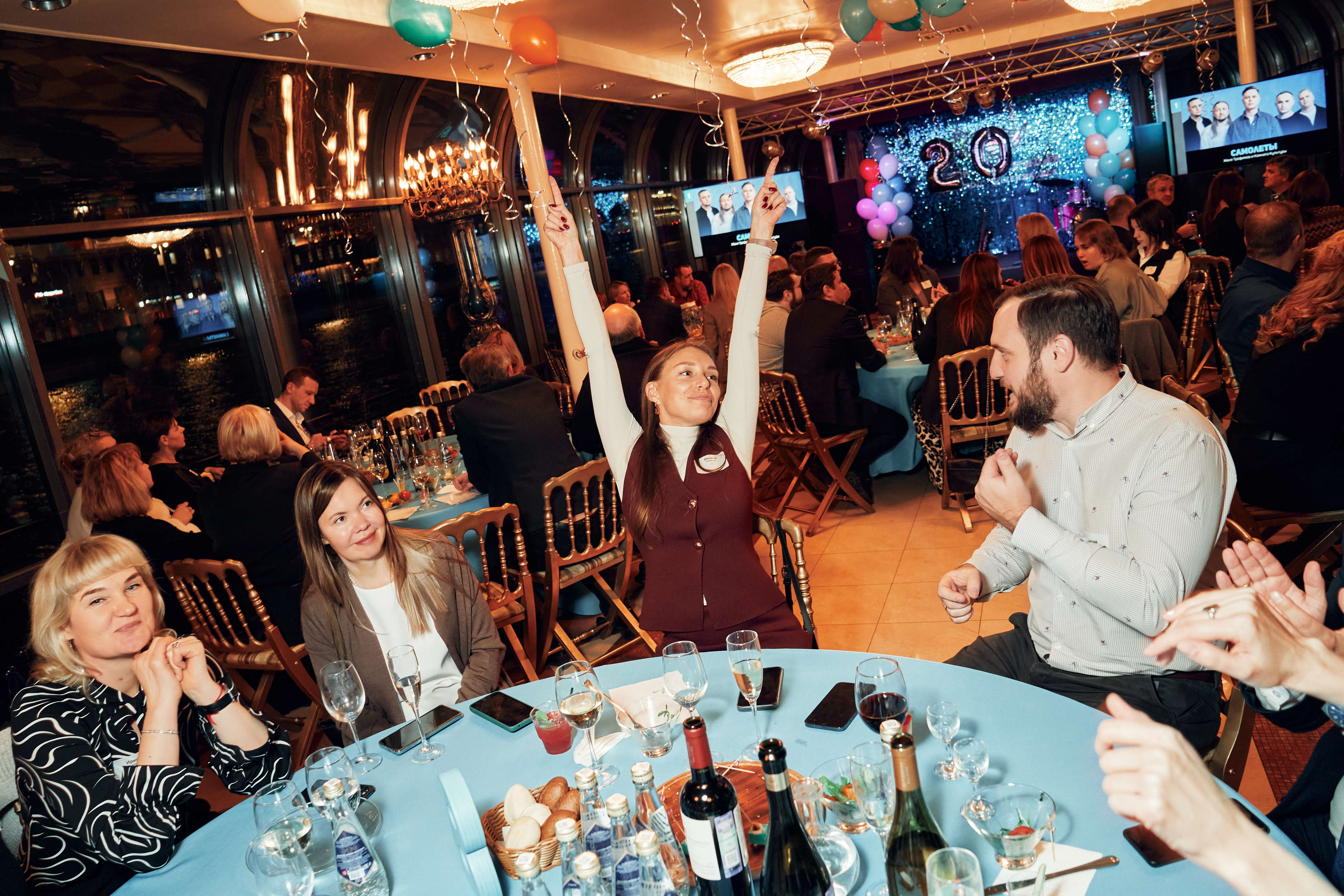 Отправились в путешествие по волнам, подняли бокалы за годы успеха и за совместные будущие достижения. Закрытая встреча с клиентами по случаю 20-летия компании. Количество участников: 200 Роль: ивент-директор